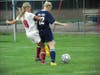 After the break, Saline kept up the offensive pressure. Veal added her second goal at the 34:35 mark, pushing the Hornets ahead by three. Monroe’s frustration began to become evident, as two players (unsporting behavior) and the Trojan head coach (dissent) all received yellow cards during the second half. Michelle Pattullo received a yellow card for Saline in the second half; Alli Cope had received one late in the first half for the Hornets as well. Both were also for unsporting behavior.
