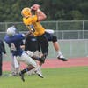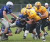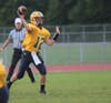 The Saline Hornets football team went on the road for the first time this year. The team faced off against the Lincoln Railsplitters in what became a cool, rainy evening: perfect high school football weather. Saline (2-1) jumped ahead early using a number of players and never looked back on the way to a 41-7 thumping of Lincoln (2-1).