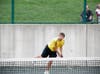 In singles play, Blake Ahadi finished off his opponent (6-0) (6-1), David Zick beat his competition (6-1) (6-0) and Will Heider completed his match (6-1) (6-2). Saline’s Karl Winsor and Skyline’s Ryan Jackson were still competing when rain stopped play. Winsor won the opening set (6-2), but dropped the following one (0-6); he was up in the final set (3-0).