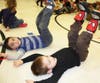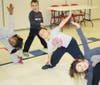 Professional yoga instructor Heather Burley, whose son Gavin was in the class, led the students in a series of simple exercises that just about anyone can do.