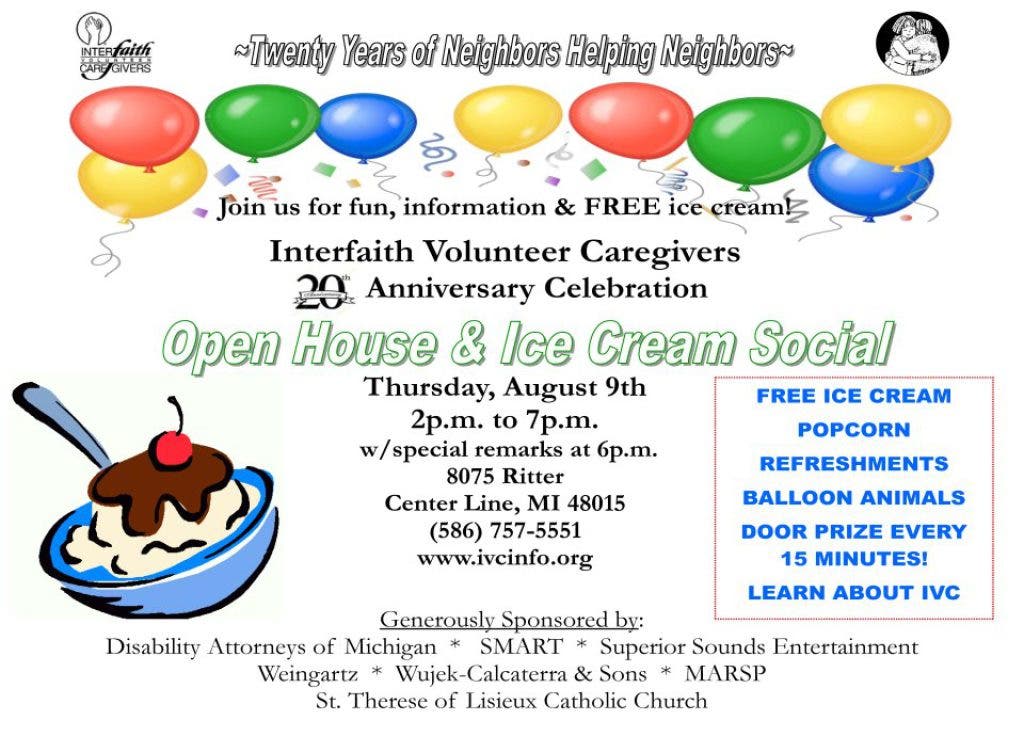 FREE Ice Cream Social & Open House - Interfaith Volunteer Caregivers Celebrates "20 Years of Neighbors Helping Neighbors"