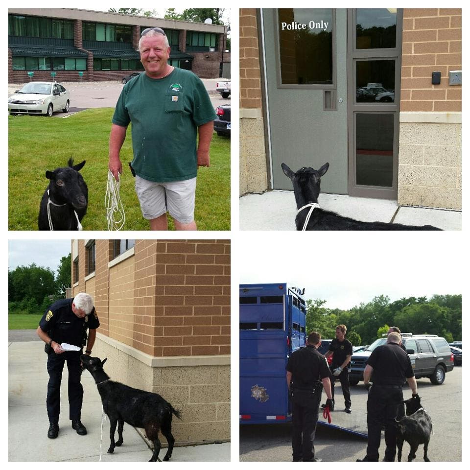 The goat roping βwent much more smoothly than the last βfarm animal in custody,β β police said in a light-hearted post on Facebook. βWe are learning. If anyone is missing a goat, by the way, she is now with the fine folks at Macomb County Animal Control, (which) has now moved to Position 1 on our speed dial.β