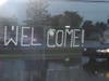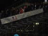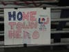 In addition, the stadium was decorated with red, white, and blue balloons and special banners thanking and honoring local workers. Departments brought various vehicles and the Shelby Township Fire Department extended two ladder trucks toward the front of the stadium. A flag hung between the two trucks.