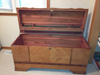 I asked her again how much she wanted for it and she tilted her head and said, "I don't know, how about $5.00?" I said, "Sold!" So I paid her for the chest and told her I'd be back in an hour with my husband and son to pick it up. Then I headed home in anticipation after I had message my two guys to make sure they don't stop anywhere on their way home from work because I needed them to pick up an item I'd purchased. Andy came over around 5:00, shortly after Jim got home from work and we all headed over to the estate sale on "Love" street, appropriately named for my lovely cedar chest. They loaded it up in the van and poor Andy had to squeeze between the chest and the seats since we had to put my "stow and go" seats down, but for the short trip home, it wasn't a biggie.