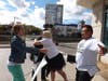 Garza and Smith, along with a couple dozen students from the Paul Mitchell Cosmetology School in Sterling Heights could be found up and down Main Street with arms wide open.