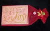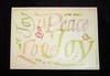 The cards, which feature the message of "peace, love and joy," come in a package of 10 and packaged in a reusable red tulle bag sealed with a gingerbread ornament