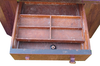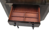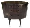 This was an unexpected estate sale find. I had seen a knitting cabinet such as this at an antique store in Kalamazoo when we went to the Art Fair the first weekend in June. It had sold for $180.00 as it was about 100 years old. This one had come from someone who had lived in St. Clair and was moving all the furniture out. I couldn't resist since it looked like it just needed a little bit of love. The only broken piece was the left handle on the top drawer, an easy fix. The cabinet was in excellent condition otherwise with its fluted and turned legs. Other than a bit of debris in the deep ends, it was fairly clean too. After I fixed the broken knob, I gave the entire cabinet a thorough sanding, and re-stained it with dark walnut, which brought out its natural walnut finish.
