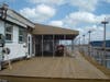 The covered exterior bar seats 24, has tables along the huge dock, and offers a great view of the water. With seating for 150, diners will also notice the "ring buoy" theme throughout.