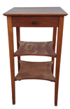 I'm always on the lookout for small tables. I find them to be universal and highly desirable, so when I came across this small cherry table at an estate sale, I knew I found a treasure. I overlooked its shabby facade and saw the potential beauty underneath. I especially liked the "webbed" shelving, which I thought was a great design feature. That it had a shallow drawer made it even more appealing, so I snatched it before someone else discovered it hidden in hidden in a corner of a bedroom.