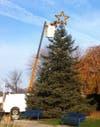 City crews took advantage of the sunny skies and warm weather Thursday to string lights around St. Clair Shores City Hall in preparation for the annual Christmas tree lighting.