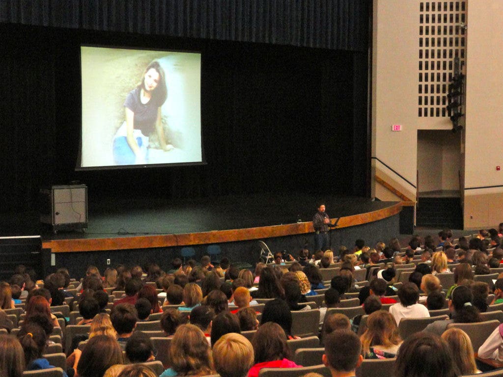 Students, staff and administrators from and Lakeview High School filled the auditorium to hear from Larry Scott, the uncle of Rachel Scott, the first victim at Columbine.
