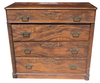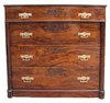 When Jim and I came across this unique dresser we couldn't pass it up! Its character was a one-of-a-kind find and we both loved the excellent quality and details of this piece. The handles were all present (something rare in old dressers) and they had a unique art-deco style that appealed to us. Upon further examination, we discovered the dresser had two very long cracks on each side, one side being worse than the other. After we got it home we looked closer and discovered that this dresser had no veneer! Whatever that wood was, it has had been the construction of the dresser and was about 7/8" thick. We had never seen anything like it. We knew we had a gem.