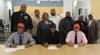 Travon Desaussure, quarterback, and Deshun Brown, running back, both signed letters of intent to play at Ferris State University. Delshawn Duke, middle linebacker, signed to play at Iowa Western Community College.