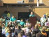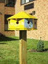 The birdfeeders consisted of pine cones rolled in peanut butter then sprinkled with bird seeds. The students used yarn to hang the feeders around the perimeter of the school.