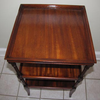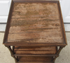 Looks can be deceiving and this one looked like it would be "a piece of cake" to remove the old stain and simply re-stain. Yeah, right. It proved to be quite the challenge as that old stain simply REFUSED to come off. I have three power sanders and lots of sandpaper and I used all of them to remove the extremely stubborn old finish on this old cherry telephone table. This was a client of mine who also had me refinish her red magazine rack. I had no idea this piece would be as difficult as it was! I spent the better part of 1-1/2 days just removing the old finish, but I was determined to make