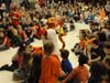 The visit came during the school's weekly assembly, and surprised the nearly 525 students who were decked out in Tiger gear.