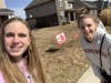 --Athens High School student council representatives Erin Swartz, junior (left), and Jessica Jansen, freshman, share a flock of flamingos planted in a student’s yard as a fundraiser for the school’s Community Week held recently.