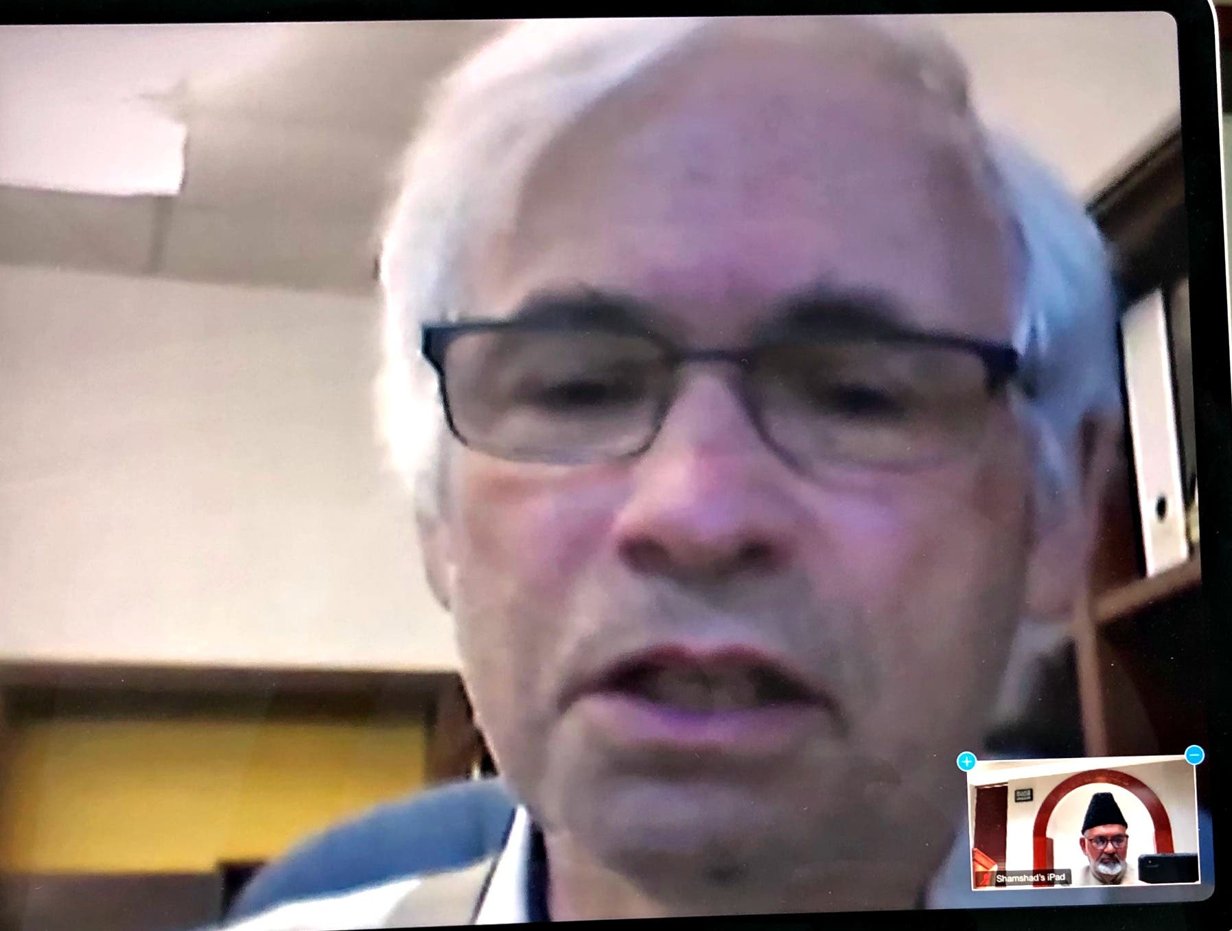 Imam joined the virtual conference from Masjid (Mosque) Mahmood’s prayer hall which generally would be filled with people but due to the pandemic conditions and the restrictions, there were not any member present.