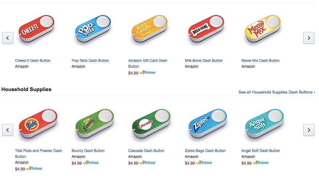 Amazon Dash Buttons — Curious about using Amazon Dash buttons, which instantly re-order you supplies such as toilet paper, snacks and more? Amazon will basically pay you to try one. Buy one for just 99 cents (they usually go for about $5), and get a $4.99 credit after you press it once.