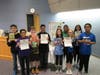 Photo4: Kids with the March-Madness-style bracket and the Troybery nominees. (L to R): Baker 7th grader Harrison Otton, Baker 6th grader Samantha Steiner, Boulan 7th grader Saima Ahmed, and Larson 6th grader Jessica Gao.