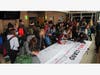 As he wrapped up his presentation, Feldman invited students to sign the giant banner in the hallway that said ‘Take a STAND: I pledge that I will keep my eyes on the road, keep my mind on driving, keep my hands on the wheel.’ Feldman concluded by saying “I’m fortunate I get to do this, to get people’s attention about distracted driving, to make a difference.”