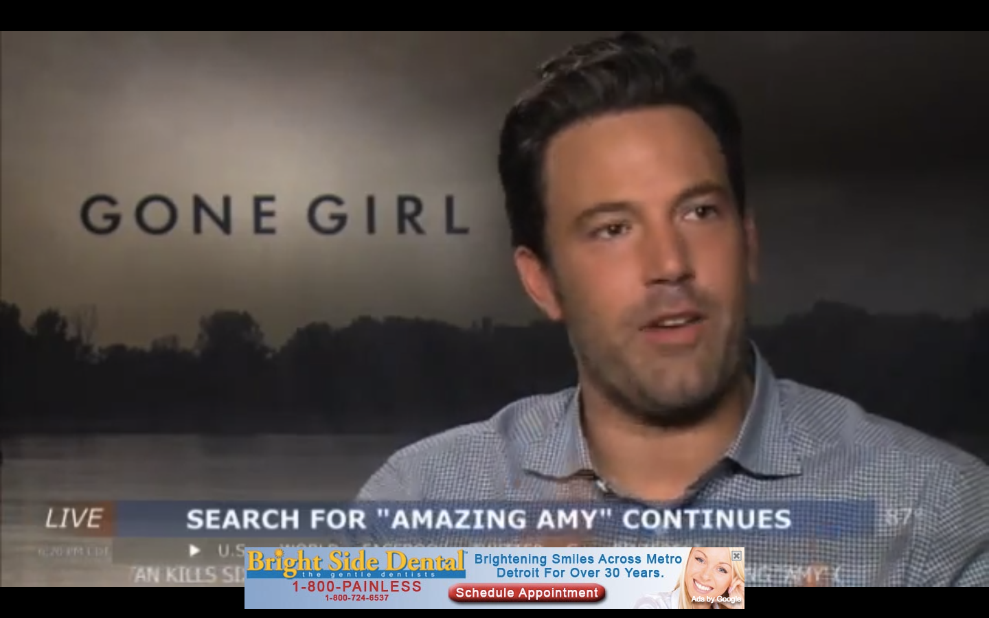 Promoting his new movie “Gone Girl,” Ben Affleck took some time to talk about his native Detroit, where he’s filming the Warner Bros. “Batman v. Superman: Dawn of Justice” movie. (Screenshot: WJBK video)