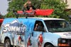 Some along the parade route sought reprieve from 90-degree heat underneath the trunk hood of their vehicles and others underneath umbrellas, but perhaps the most popular gathering-place was at Gino’s Pizzeria, just a stone’s throw from City Hall.