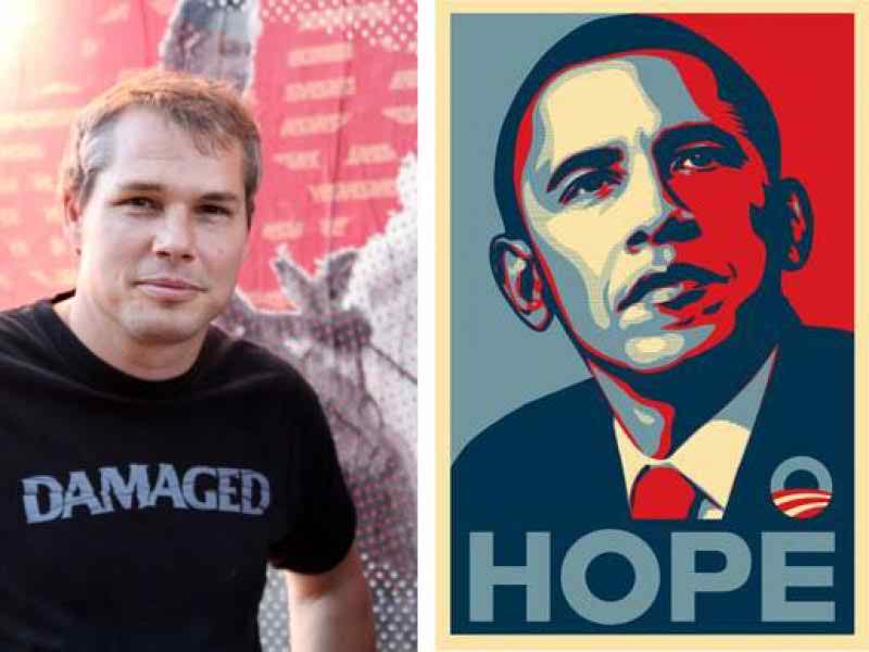 Shepard Fairey and his iconic Barack Obama Hope poster. (Fuzheado)