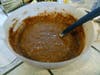 In a separate bowl, sift together the cake flour, cocoa, baking soda and salt. Once sifted together, slowly add to the wet ingredients and mix together.