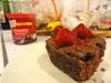 Let the cake cool completely. Once cooled, frost with your favorite chocolate frosting and top with strawberries.
