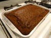 Once well blended, pour into a greased and floured 9x13 cake pan or two smaller 8-inch rounds. Bake in a 350 degree oven for 35-40 minutes until a toothpick inserted in the middle of the cake comes out clean.