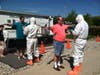The emergency drill scenario included a jackknifed semi-truck, hauling spent nuclear reactor fuel. The semi-truck caused a chain reaction accident involving a school bus and several other vehicles, as well as an exposure to toxins for all involved.