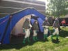 The hospital staff and volunteers, Commerce Township Fire Department, Wixom Fire Department, North Oakland County Homeland Security Hazmat team and Oakland County Sheriff implemented the, "Unified Command," Incident Command System where the functional groups in the disaster exercise worked together to provide a continuum of support for patients, staff and the public. Victims were sent through primary and secondary decontamination, scanned for radiation and triaged to the Emergency Department for further treatment if needed.