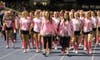Lakeland is raising money for cancer by dressing in pink. Thursday, the JV football team took the field.