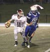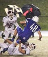 The Milford Mavericks topped cross town rival Lakeland 35-32 in a steady rain Friday night. The Mavericks scored first on a 5-yard run by quarterback Alex Larson capping an 80-yard drive. Milford’s defense held the Eagles on their opening drive and took over at their own 20 yard line after an Eagle punt. The Mavericks scored quickly as Larson hooked up with Jonathon Schwartz on a 75-yard touchdown pass as the visitors took a 14-0 lead.