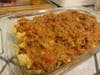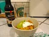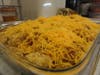 While the mixture is simmering, pour the chips into a casserole dish and spread evenly. Next, spread the hot beef mixture over the chips. Sprinkle the cheese on top and put in the oven until cheese is melted (10-20 minutes). Top with your favorite salsa, sour cream or guacamole and enjoy!
