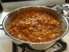 To start, heat the oven to 350 degrees. In a large saucepan or Dutch oven cook the beef. Add all ingredients but the cheddar cheese and chips to the pot and simmer for 10 to 12 minutes.