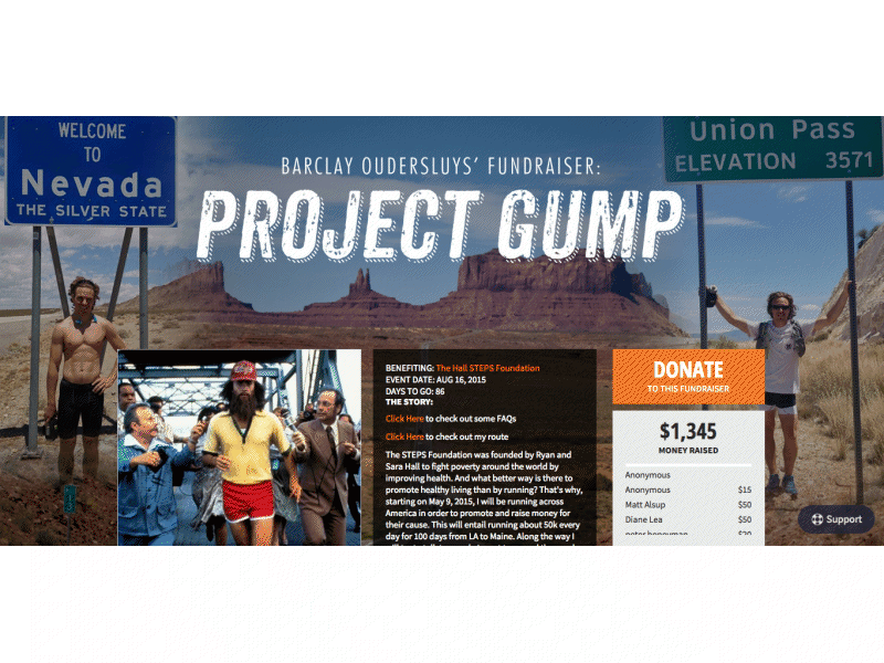 Oudersluys is following in the footsteps of one of his all-time favorite movie characters to raise money for The Hall STEPS Foundation, a charity founded in 2009 by distance runners Ryan and Sara Hall to fight global poverty and improve health. Donations may be made on CrowdRise, where $1,345 had been raised by Friday afternoon.