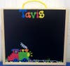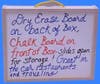 The children’s chalk boxes that Kennedy sells are small, wood cases with a chalkboard on one side and dry erase board on the other. The box slides open, allowing chalk, markers or other supplies to be stored inside and carried.