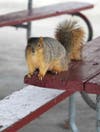 I had driven the car to the Park that morning, and, by the time I walked six miles, a few squirrels came looking for more goodies just before I was ready to head home. One even climbed up on the picnic table, hoping I might be laying out some treats for him there. As he gave me a stony stare, I found myself feeling guilty but I said "I'm sure you got walnuts already and if not, well ... you snooze, you lose."