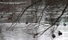 A thin veil of ice covered over portions of the Creek, but it didn’t seem to faze the ducks as they just navigated around the ice while they preened or dipped and dived for their breakfast.