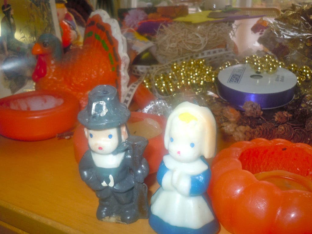My own “it’s-not-Thanksgiving-until-we-do-this” tradition involves a couple of wax figurines. Every year in my dining room, you’ll see two 3-inch dime-store candles shaped like a pilgrim girl and boy.