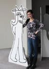The Detroit Institute of Arts' 'Hatman' characters overtake the front window of vacant Sears Building.