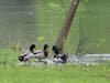 The grass was like walking on a sponge. Squish, squish, squish went my heavy walking shoes as I sank down into the waterlogged grass. I had to turn around and head back, but found a few ducks enjoying a morning swim. These ducks looked like they were catching up on neighborhood gossip, as if they were laughing about something don’t they?