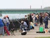 On this hazy morning, the fishermen were out in full force – just look at them lined up all along the Detroit River boardwalk.