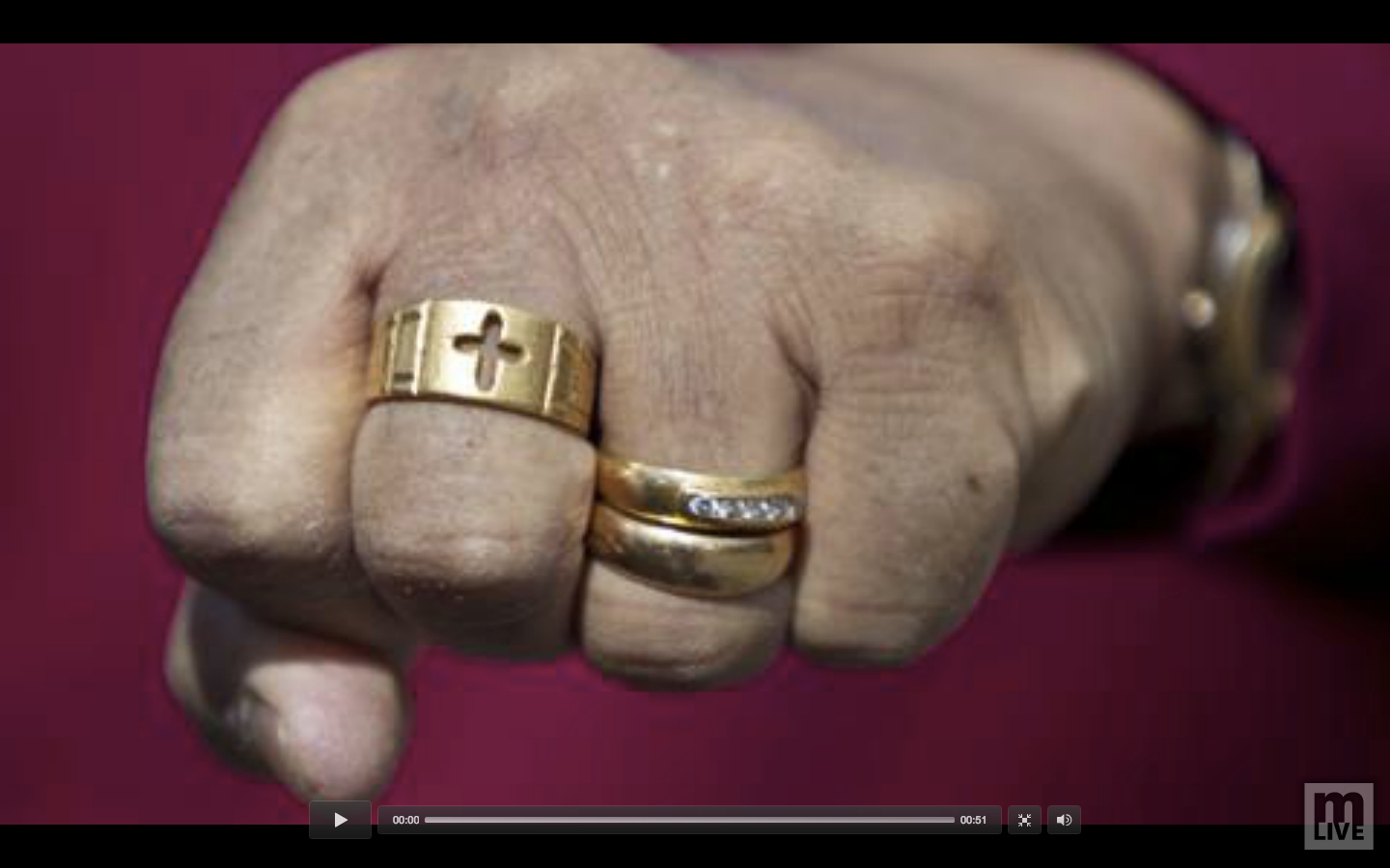 Pakistani immigrant Abraham Joshua had given up hope of finding the ring he asked a jeweler friend to design to proclaim his Christianity. (Screenshots via The Grand Rapids Press/MLive.com)