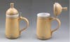 In the 1500’s, Germany passed laws that required all food and beverages be covered due to seasonal invasions of swarms of flies to the region and the recent memories of the horrible Black Plague. The result of these two calamities was the invention of a covered beer mug. Stoneware steins gained great popularity up to the 1700’s. Dan Saultman's stoneware beer steins are made with a special "white stoneware" that is a cross between porcelain and regular coarse stoneware. It is a strong, tough fired clay. His beer stein design is a nod to tradition. The lid, made from hand made stainless steel hinges, swings smoothly and has a stop-rod that keeps the lid open, in a balanced vertical position, for easy handling.