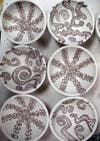 Nicole Pangas's work explores abstract image making through a variety of materials and methods including painting, photography, printmaking, sculpture and clay. She recently created one of a kind, high fired stoneware skull cups and other unique ceramics, as well as a series of "Mantra Tiles" - tiles with everyday sayings and musings. Nicole earned her BFA at the Cleveland Institute of Art. She also attended the University of Illinois, Champaign and Lacoste School of the Arts, France. Nicole was as an artist in residence at Pewabic Pottery in Detroit. She has taught at the Cleveland Institute of Art, Champaign Park District, IL and in Detroit at Pewabic Pottery, Your Heritage House, and The College for Creative Studies.