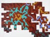 The interactive medium is a collection of individual design parts. One hundred basic, bi-colored designs are based on one common skeleton. These designs are extended with reflections, color reversals, and twelve color combinations to provide more than two thousand parts. The parts are hand painted on 3” x 3” x1/8” wood squares. Individual parts present unique designs, but like many construction toys, they contain interactive potentials.