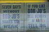 A sign hangs in the front window that reads: “If you like Bob Jo’s, tell others. If not, tell us."